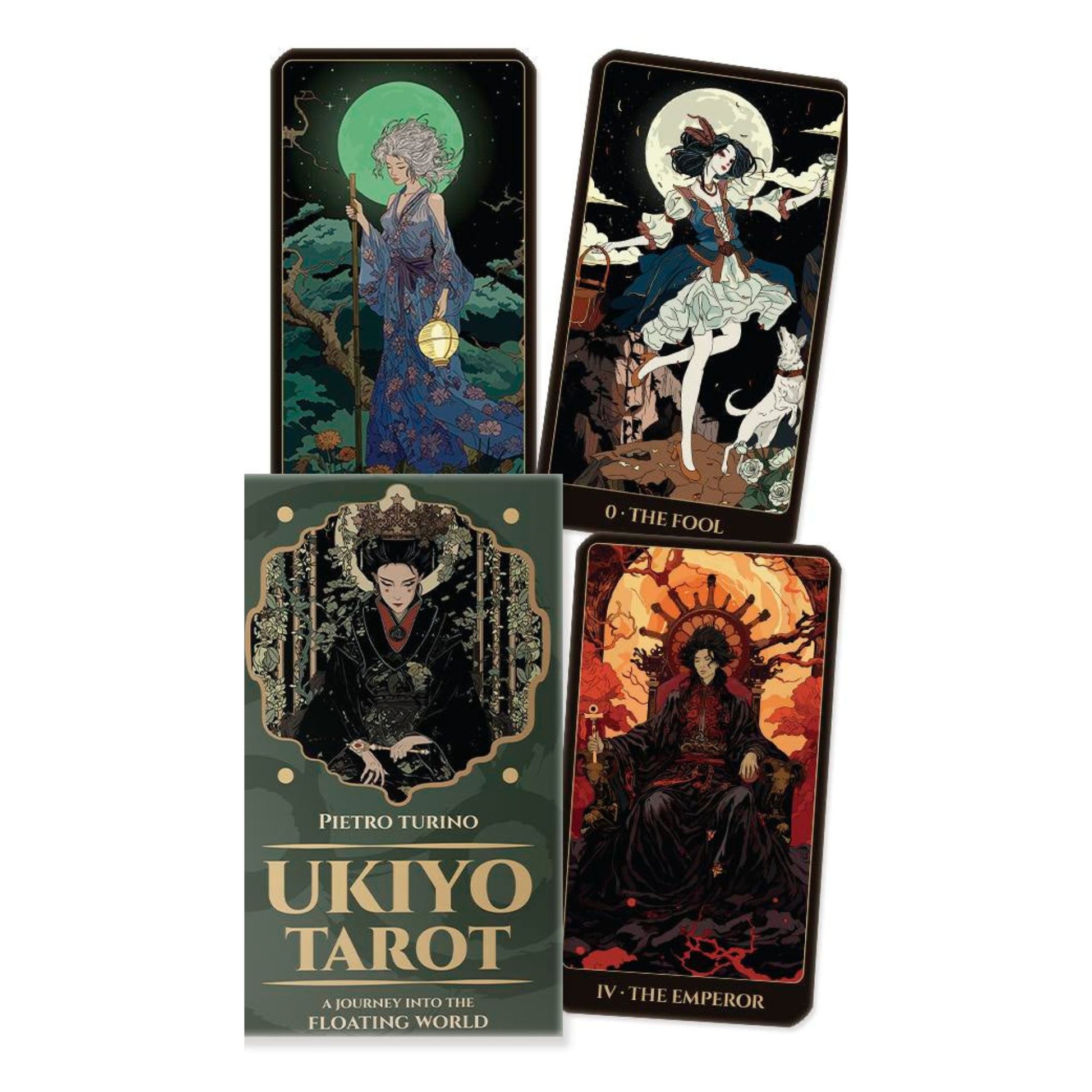 The Japanese term ukiyo (the floating world) came to prominence in the 17th century to describe the pleasure-seeking culture of urban lifestyle in cities like Edo, Kyoto, and Osaka. From it stemmed an art movement that dealt with notions of transience, impermanence, and the ephemeral. This tarot deck recalls these fascinating concepts and combines them with a modern anime-like style to bring the subtle beauty of the floating world into the new millennium.